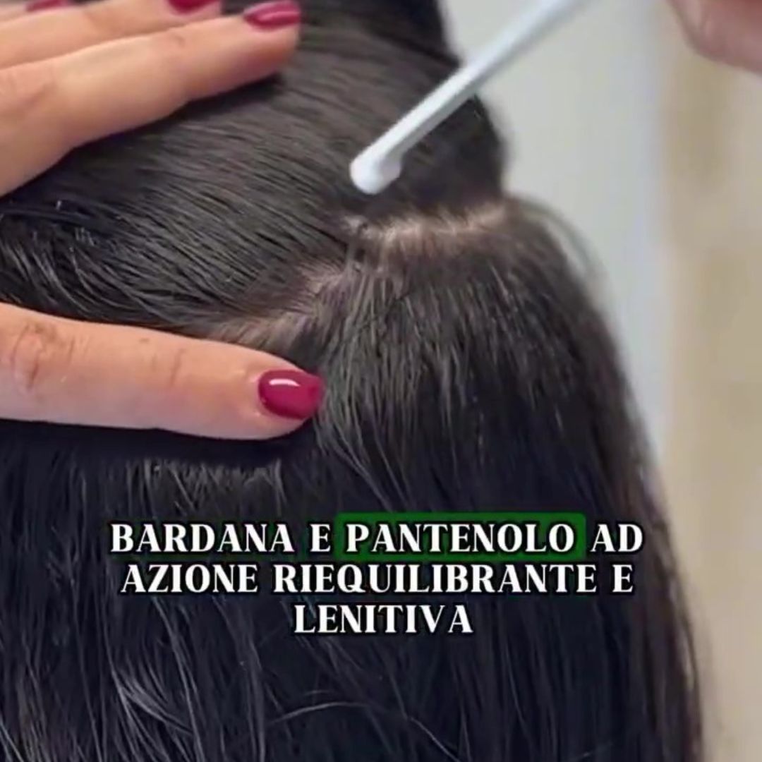 Lozione coadiuvante nel trattamento di cuoio capelluto colpito da ipersecrezione sebacea, a base di estratto di Betulla e Bardana, Acido salicilico, Zolfo, Zinco, Propoli e Pantenolo.